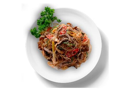 綠豆粉條是由綠豆粉、土豆粉和鹽制作而成,采用現代化機械制作非常細小的粉條。