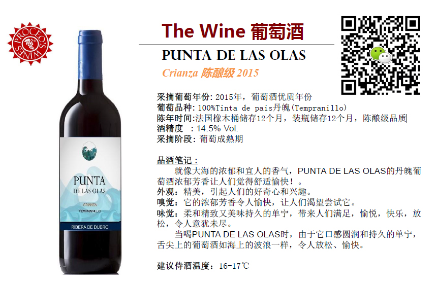 杜埃羅河岸以高品質的紅葡萄酒最負盛名,其中最棒的紅葡萄酒在世界各地都享有很高的聲譽。PUNTA DE LAS OLAS葡萄酒是由丹魄釀造而成,杜埃羅河岸地區幾乎將全部精力都放在紅葡萄酒的生產上,使用最多的紅葡萄品種是丹魄(Tempranillo,當地人稱為Tinto Fino),占所有釀酒葡萄總量的81%。