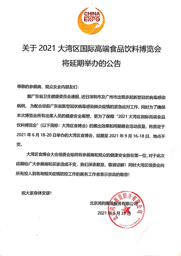 隨著我國將粵港澳大灣區(qū)建設(shè)上升為國家戰(zhàn)略,以全面開放的新舉措、新實踐,深化內(nèi)地和港澳交流合作,對港澳參與國家發(fā)展戰(zhàn)略,提升競爭力,保持長期繁榮穩(wěn)定具有重要意義。為了加快推進粵港澳大灣區(qū)的建設(shè),引領(lǐng)大灣區(qū)高端食品飲料行業(yè)市場的快速發(fā)展,有中國食品工業(yè)協(xié)會主辦,北京鴻利展覽服務有限公司承辦,北京中食國際會展有限公司具體執(zhí)行的本屆“2021大灣區(qū)國際高端食品飲料博覽會”將于2021年6月18日-20日在深圳國際會展中心舉行。