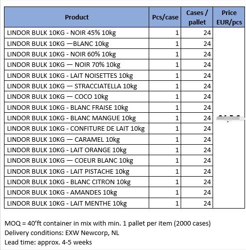 【葡萄牙】供應LINDOR瑞士蓮巧克力10kg(17種口味可以混批)