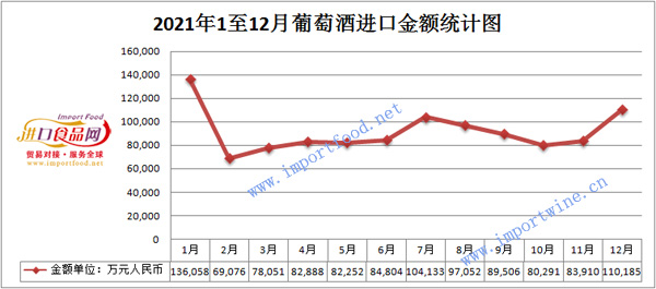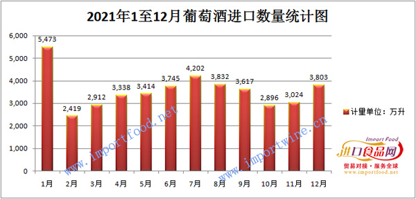 根據(jù)統(tǒng)計圖顯示,2021年1月全國葡萄酒進口量達到頂峰,此后出現(xiàn)迅速回落,2021年7月出現(xiàn)進口小高峰。
