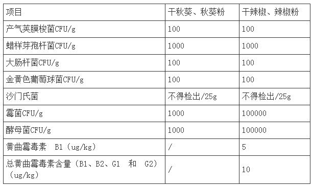 2023年3月24日,科特迪瓦標準局發布4726、4725號咨詢文件,擬制訂干辣椒、辣椒粉及干秋葵和秋葵粉標準。意見征集反饋期60天。主要內容:(1)適用范圍。適用于干辣椒、干辣椒粉、干秋葵和秋葵粉標準;(2)一般要求。無異物、具有特有的氣味、顏色和味道等;具體微生物等項目要求如下表所示;(3)包裝和標簽要求。制造商的名稱和地址、產品名稱、品種類型、凈重、生產日期、保質期、保存方法等。