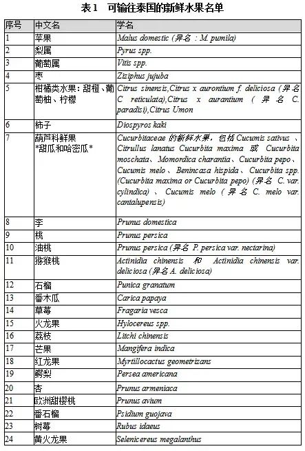 一、我國可向泰國出口的新鮮水果種類