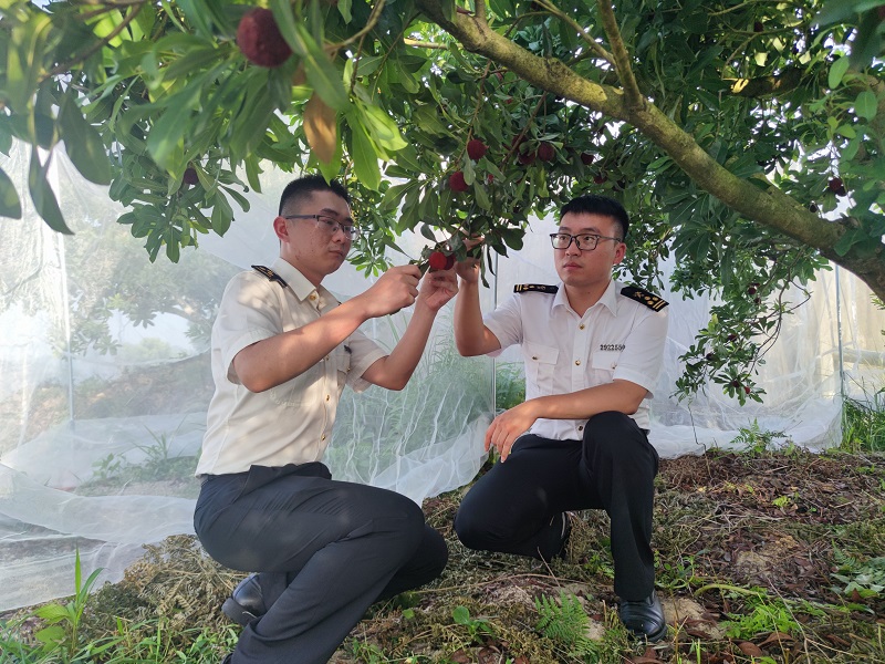 圖為:關員在楊梅種植果園開展出境前檢驗檢疫 周振宇/攝