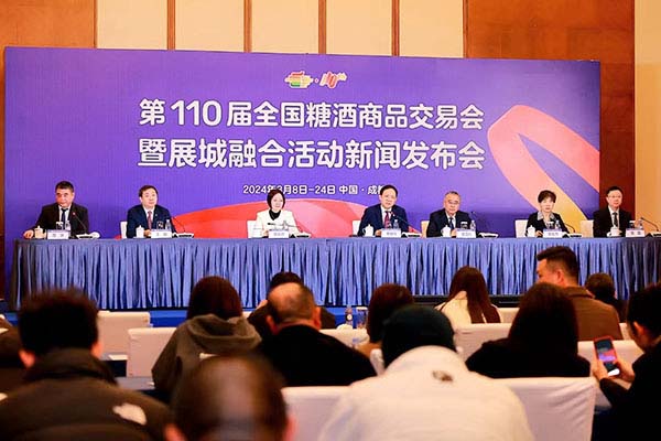 3月1日,第110屆全國糖酒商品交易會暨展城融合活動新聞發布會在成都召開。全國糖酒會組委會、成都市博覽局、商務局、文旅局、青白江區相關負責人出席發布會介紹有關情況并答記者問。