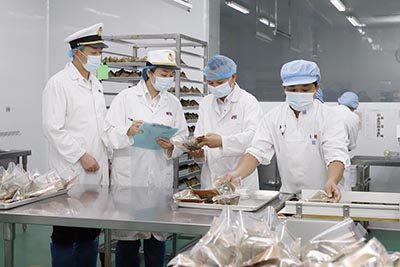 第二重鮮味,是來自于高品質的原料。蘆兜粽用料豐富,需用到飽滿的糯米、豆類,再配三個咸蛋黃、三塊豬肉。中山海關作為出口食品的屬地監管單位,嚴格源頭管理,督促生產企業落實主體責任,指導企業對應標準要求,加強對糯米、豬肉、蛋黃、糖油、添加劑等原輔料的質量管理,采購優質安全原料,保障食品安全新鮮。