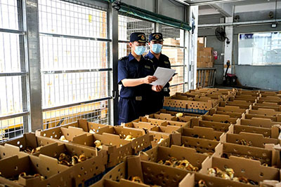 隨著“三伏天”的到來,嶺南地區開始經歷高溫的“烤驗”,連續的“燜蒸”感一直在線。位于深圳河畔的文錦渡口岸出口查驗場內,伴隨著一聲聲“嘰嘰、嘰嘰”的雞苗叫聲,深圳海關所屬文錦渡海關的關員們加快了步伐,頂著“三伏天”的高溫走上查驗臺,迅速而熟練地對活雞苗開展細致的查驗。
