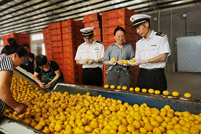 為支持地方特色優質農產品擴大出口,臺州海關優化服務,開展果園和包裝廠定期管理核查,幫助企業完善果園質量管理體系,指導果農科學使用化學品,建立農產品溯源制度和生產記錄臺賬,協助制訂柑橘生產質量控制規范,按照規范進行果園種植采摘,確保出口柑橘品質合格。柑橘出口時,開辟屬地查檢綠色通道,隨報隨檢,通過檢驗檢疫證書“云簽發”等便利措施為柑橘出口提供通關便利。“不同的目的地國對柑橘出口的要求不盡相同。幫助企業理解和消化其中的規則,有利于推動柑橘出口,也有利于以出口標準倒逼企業提高果園管理,推動農產品高質量發展。”臺州海關駐臨海辦事處業務四科張巧玲介紹。