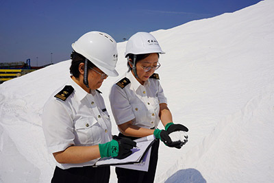 圖為:關(guān)員在現(xiàn)場(chǎng)對(duì)保稅氯化鉀進(jìn)行驗(yàn)核 王瑜/攝