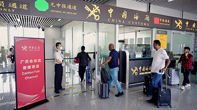 圖為:廣州海關在琶洲港澳客運口岸設置廣交會來賓便捷通道,保障入境展客商便捷通關 韓建全/攝