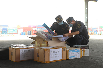 圖為:關員對第136屆廣交會進口展品進行監管 麥東豪/攝