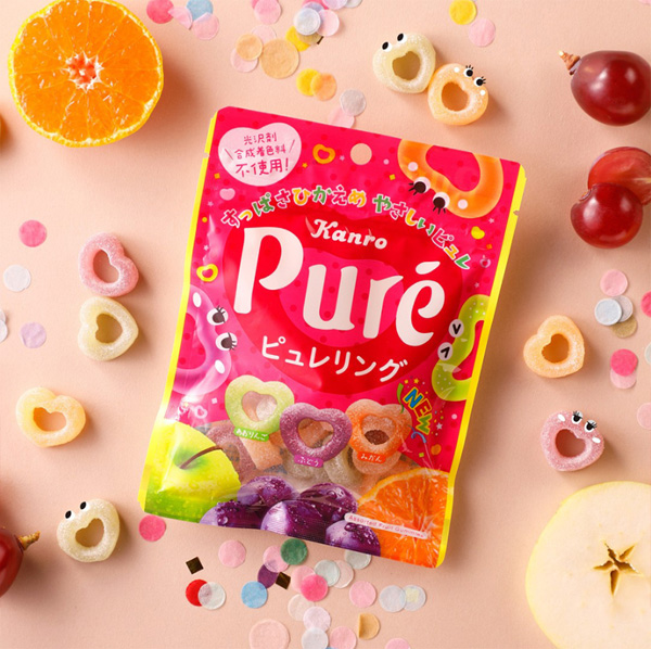 可以健康地享受葡萄、蘋果、桃子的清爽口感,富有嚼勁的優質果凍軟糖。