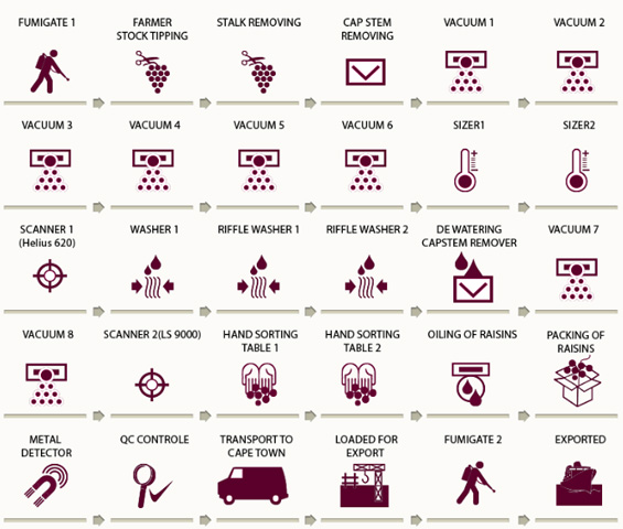 ? ? ? ?我們公司成立于1997年,主要從事葡萄干生產(chǎn)和銷售,從葡萄種植,加工,包裝和出口,我們都是層層把關。我們公司是由一群有激情的荷蘭人建立的,曾從事30-40年相關行業(yè)銷售,后來發(fā)現(xiàn)南非擁有非常適合葡萄生產(chǎn)的地理位置,加工后的葡萄干品質和價格都更有優(yōu)勢。