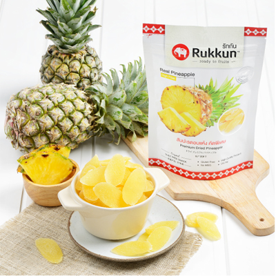 泰國地處熱帶,陽光充足、溫度適宜、降水豐沛,適合水分多的水果生長,因此當地的菠蘿甜嫩多汁,美味可口,酸甜可口,通過我們超過8小時的加工,經過10道工序,制作出來的果干非常美味健康。