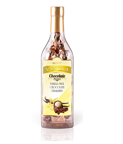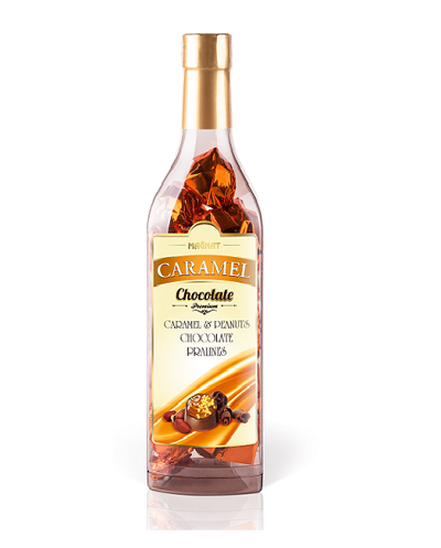 這款巧克力采用玻璃包裝,非常有特色,由三種口味的巧克力組成,分別是榛子巧克力、香草巧克力以及焦糖花生巧克力。