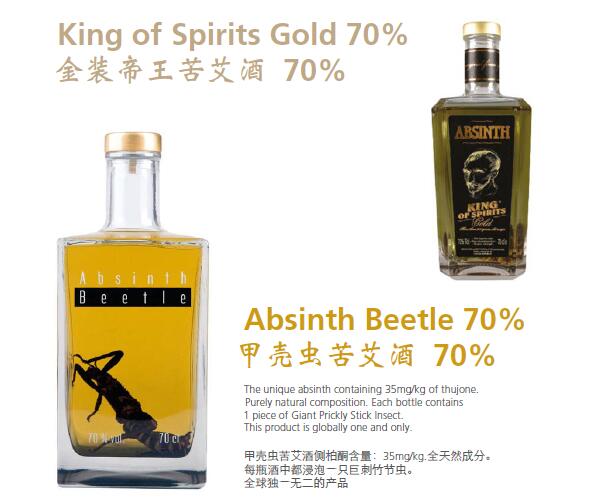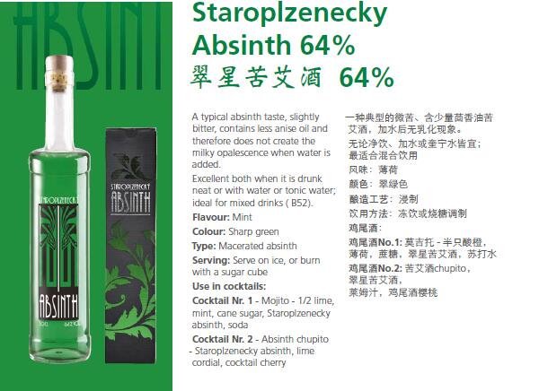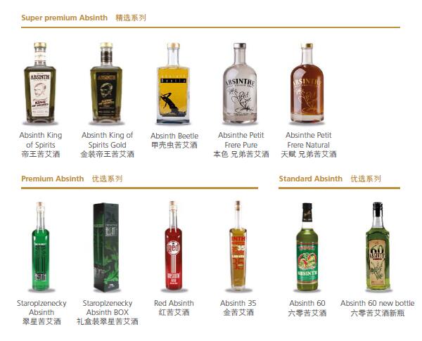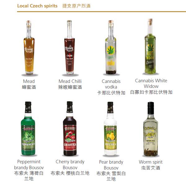 苦艾酒是一種有茴芹茴香味的高酒精度酒,主要原料是茴芹, 茴香及苦艾藥草。此酒芳香濃郁,口感清淡而略帶苦味,并含有45度以上高酒精度。 捷克苦艾酒為綠色,也有黑色,紅色,棕黃色。傳統上苦艾酒瓶裝時是不加糖的,因此,將其歸類為烈酒。傳統裝瓶的苦艾酒酒精度數很高,但飲用前通常使用水進行稀釋。除了苦艾酒,我們也釀造蜂蜜酒和白蘭地。