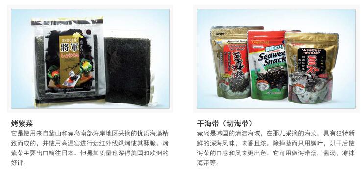 我們公司成立于2007年,主要的產品有調味紫菜、烤紫菜、香脆紫菜絲、切海帶和柚子茶,產品遠銷日本、臺灣、美國和澳大利亞等國家和地區。
