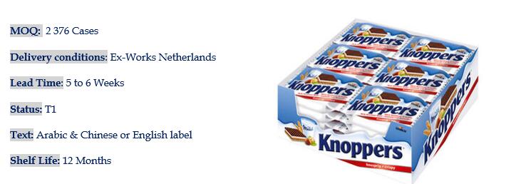 首 頁 > 綜合資訊 > 最新資訊 > 德國Knoppers榛子巧克力威化餅干報價 發表時間:2021/6/30 14:13:36 瀏覽:次 德國Knoppers原裝進口榛子巧克力威化餅干最新報價(0.?19歐元/25克),歡迎中國經銷商咨詢。 ? 咨詢電話:15362309995(微信)?? 上一篇:浙江寧波-經銷商-尋找奧地利進口紅牛(Red Bull)飲料【瞿先生 13626770***】下一篇:德國Knoppers榛子巧克力威化餅干