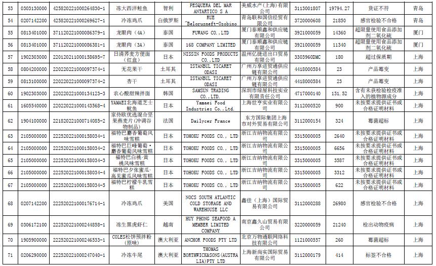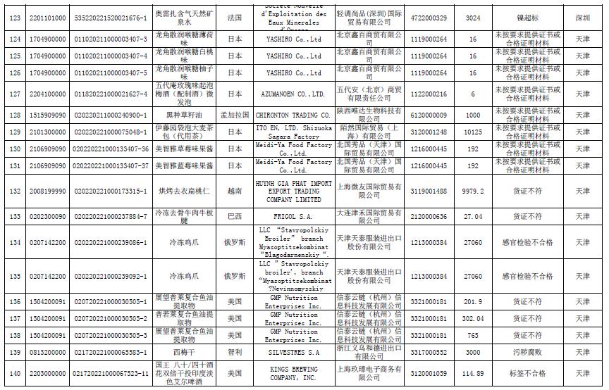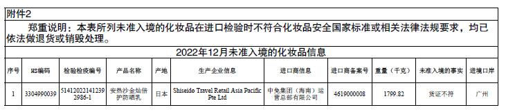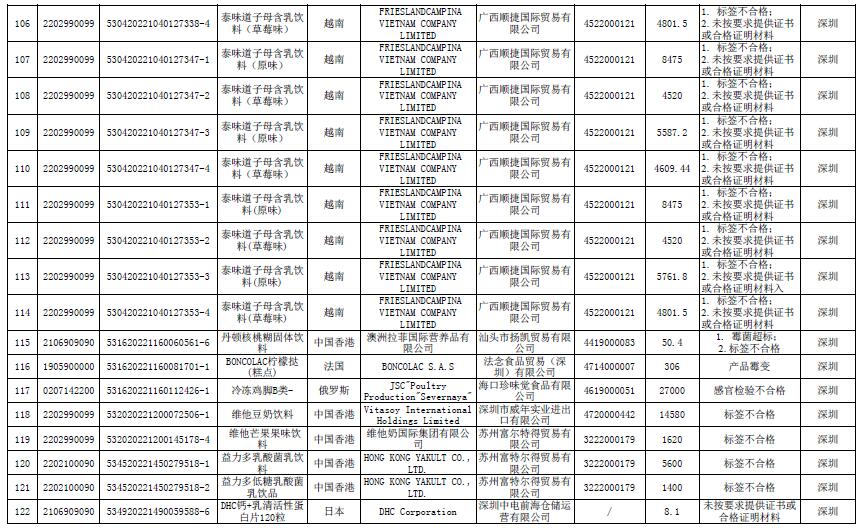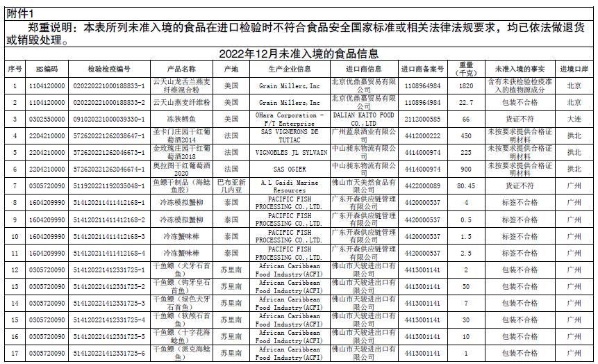 首 頁 > 綜合資訊 > 最新資訊 > 2022年12月全國未準入境食品化妝品信息 發表時間:2023/1/29 8:49:56 瀏覽:次 2022年12月全國海關在口岸監管環節檢出安全衛生等項目不合格并未準入境食品化妝品信息見圖(附件1、附件2),附件所列未準入境食品化妝品均已在口岸依法做退運或銷毀處理。 上一篇:滿洲里十八里海關保障春節期間貨物高效通關下一篇:世界銀行預計2023年全球農產品價格將下降5%