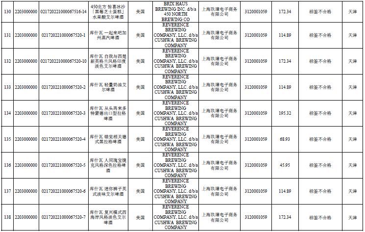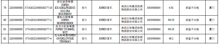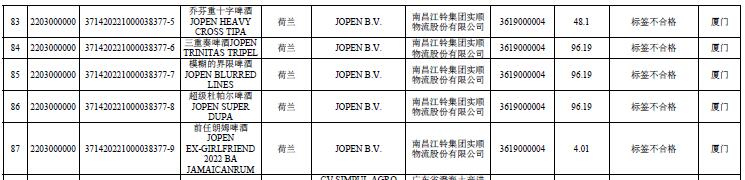 2023年2月全國未準入境的啤酒均因標簽不合格