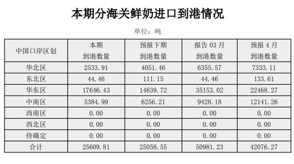·大宗農產品進口信息簡述鮮奶: 本期進口實際裝船 14731.64 噸,本月進口預報裝船 39687.68 噸,下月進口預報裝船 4325.88 噸。
