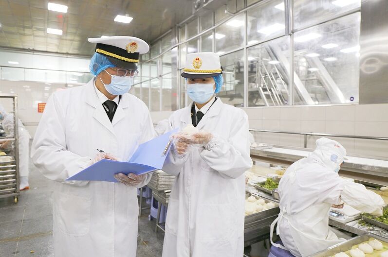 為助力揚州包子“包”打天下,揚州海關指導企業建立包括農獸藥殘留、重金屬等在內的重點檢驗清單,從源頭把好面粉、豬肉、糯米、配料蔬菜等原材料驗收關,現場開展驗證式監管,確保衛生條件、產品熱處理溫度、速凍工藝等關鍵點達到法規標準要求。同時,開通應季應節產品屬地查檢綠色通道,實時跟進企業生產進度及物流計劃,靠前制定監管預案,幫助企業在產銷旺季快速出貨通關。