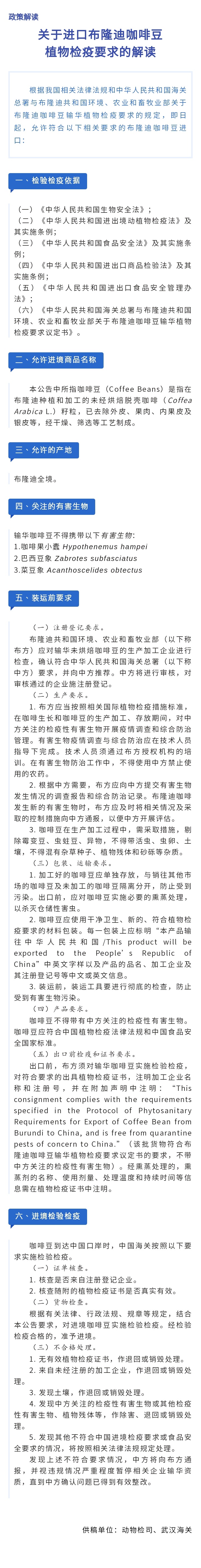 首 頁 > 綜合資訊 > 政策法規 > 政策解讀 | 關于進口布隆迪咖啡豆植物檢疫要求的公告 發表時間:2024/9/16 0:27:13 瀏覽:次 上一篇:澳大利亞更新含有10%或更多雞蛋的產品的進口條件下一篇:海關總署公告2024年第121號(關于進口莫桑比克木豆植物檢疫要求的公告)